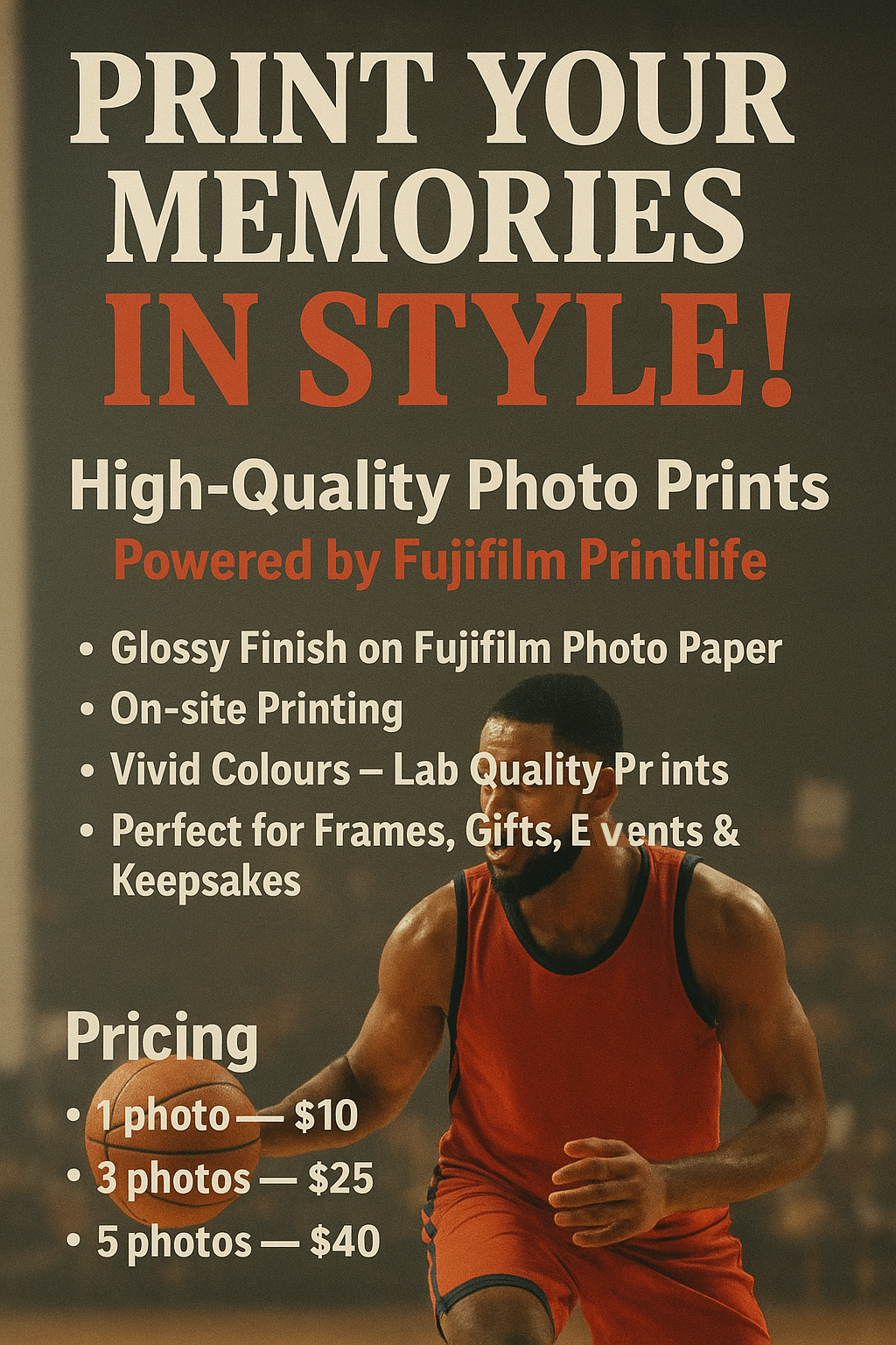 browse and select your photos at the game. we print them on-site and you leave with high quality photos in hand.